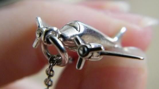På min födelsedag i somras fick jag en ask av min syster. En liten turkos ask. I asken fanns det finaste lilla silverplanet från Tiffany's. Efter att ha letat i alla affärer efter en passande kejda hittade jag en igår till slut så nu kan jag äntligen ha det runt halsen. Det jag tycker bäst om med lilla planet? Att man kan snurra på propellrarna.>