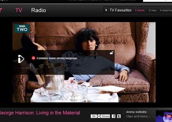 BBC visar Martin Scorseses dokumentär om George Harrison, och jag har precis sett första delen. Kommer aldrig kunna få nog av Beatles-relaterad TV, särskilt inte när det handlar om min favorit-Beatle. Needless to say, det är prima.